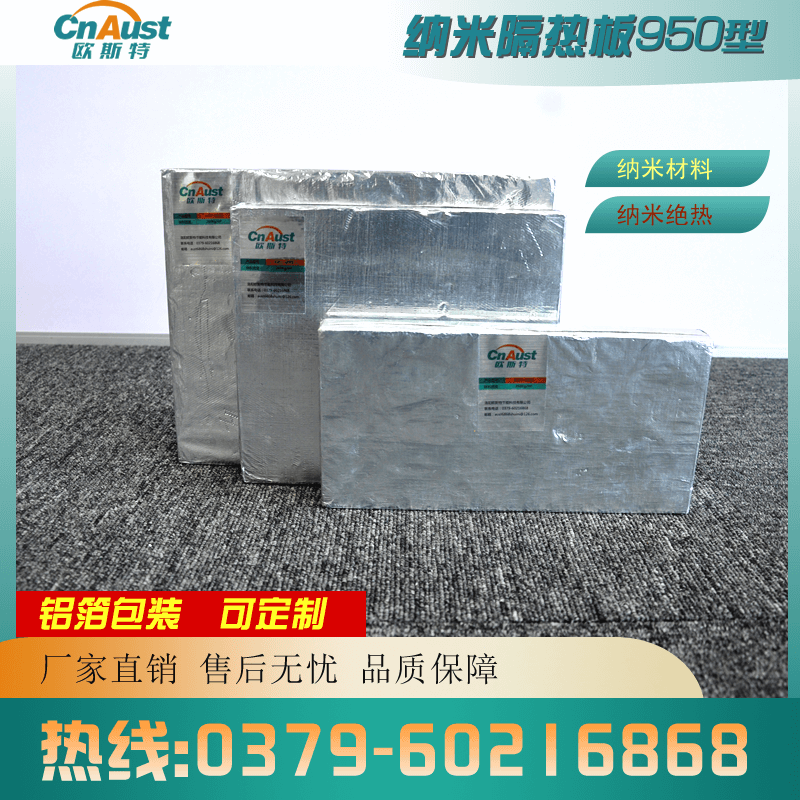 G950型纳米隔热板是本公司新高科技技术研发制造的高性能材料,具备好的隔热性能,其导热系数小于静止空气。在高温下,隔热性能是传统纤维类,微孔硅酸钙保温材料的4倍,是迄今为止保温性能较好的隔热材料。